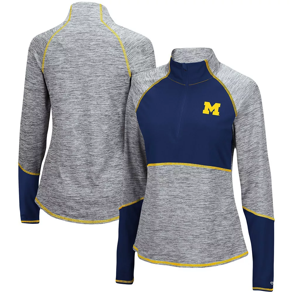 Focus attention on your Michigan Wolverines fandom by wearing this quarter-zip top from Colosseum. Its color-block design with matching stitching highlights the Michigan Wolverines logo and is accentuated by the contrasting space-dye pattern. In addition, raglan sleeves create a little extra room for more flexible movement.