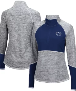 Focus attention on your Penn State Nittany Lions fandom by wearing this quarter-zip top from Colosseum. Its color-block design with matching stitching highlights the Penn State Nittany Lions logo and is accentuated by the contrasting space-dye pattern. In addition, raglan sleeves create a little extra room for more flexible movement.