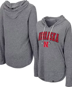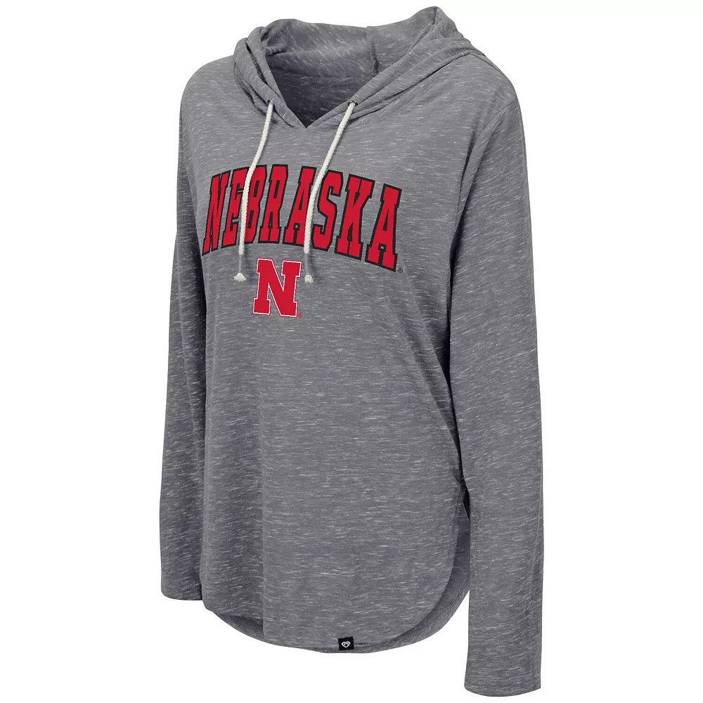 Enjoyed a layered look without the weight of a pullover hoodie by grabbing this spirited Nebraska Huskers Core Cora Campus Hoodie T-shirt from Colosseum. It features bold Nebraska Huskers graphics printed across the chest and a hood that helps block out the cold. Plus, the rounded hem ensures this added layer rests comfortably at the waist.