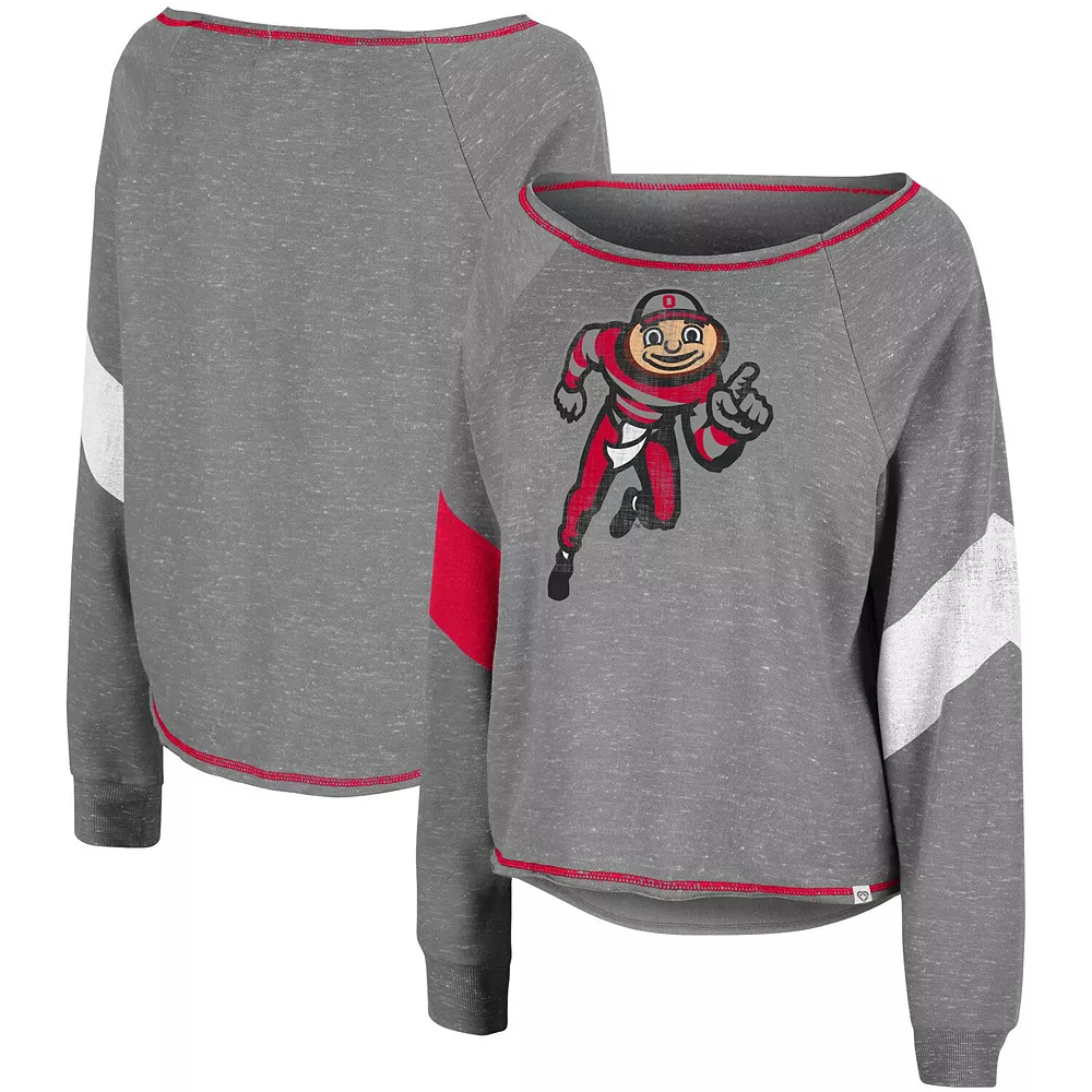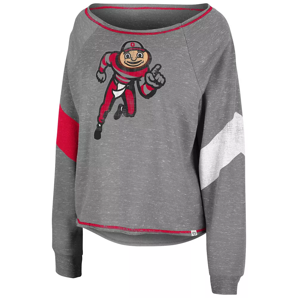 Make your Ohio State Buckeyes devotion effortlessly noticeable with this Amped pullover sweatshirt from Colosseum. It features a printed Ohio State Buckeyes logo emphasized by the team-colored chevron stripes and flatlock stitching. The boat neck also creates a more relaxed fit, and raglan sleeves provide some extra room for better movement.