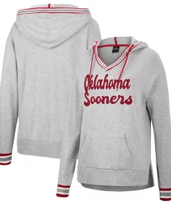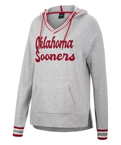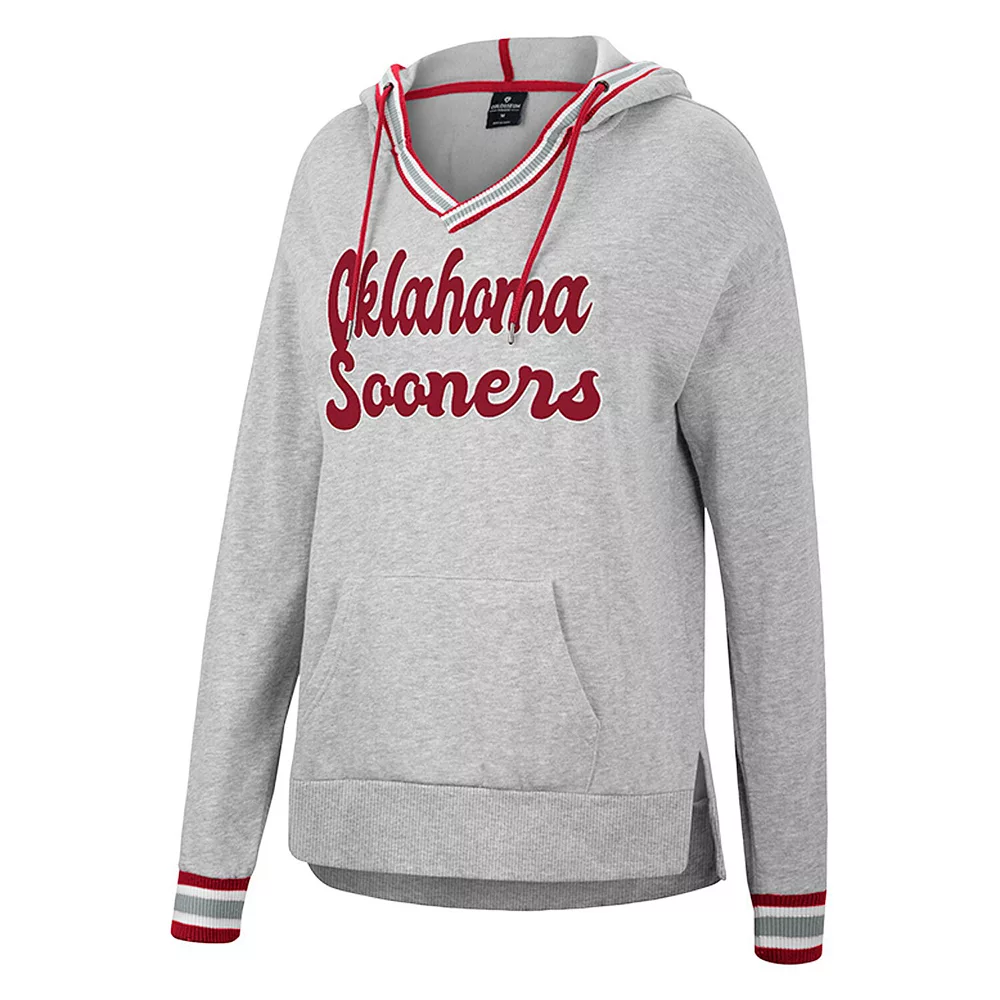 During cooler weather, draw the eye to your Oklahoma Sooners spirit with this Andy V-neck pullover hoodie from Colosseum. It features embroidered Oklahoma Sooners appliques accentuated by the rib-knit stripes in team colors. An adjustable hood, pouch pocket and droptail hem also provide added warmth when temperatures cool even more.