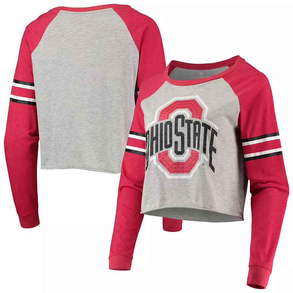 Let your Ohio State Buckeyes spirit shine with this Decoder Pin T-shirt by Colosseum. The raglan sleeves offer extra room for a natural range of motion, so cheering on your team is all the more comfortable. Best of all, this chic tee features classic Ohio State Buckeyes graphics with rhinestone embellishments that make your loyalty stand out for all the right reasons.