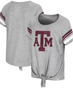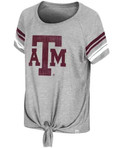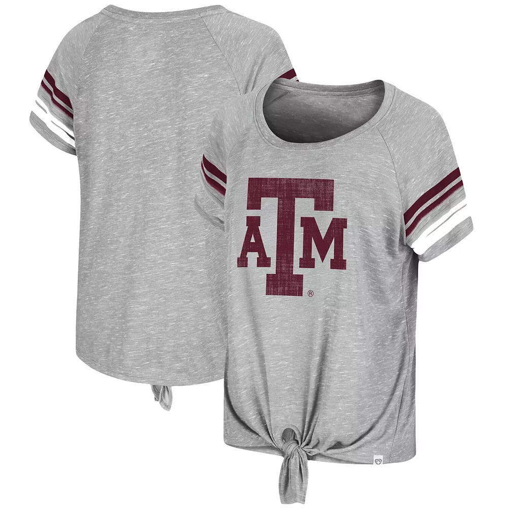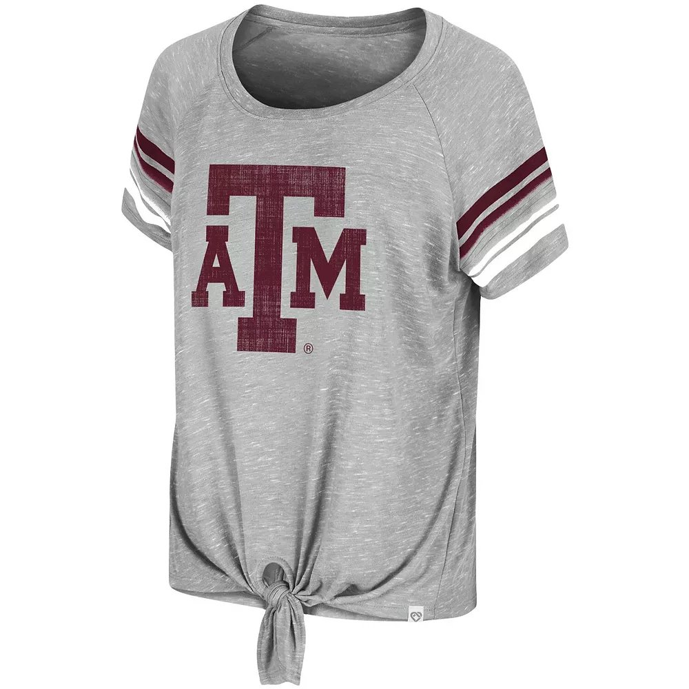 Look fashionable on Texas A&M Aggies game day in this Boo You Knotted T-shirt from Colosseum. It features printed Texas A&M Aggies graphics accentuated by the stripes in coordinating team colors and a chic tie detail in the front. Plus, raglan sleeves provide a little extra room for more comfortable movement.