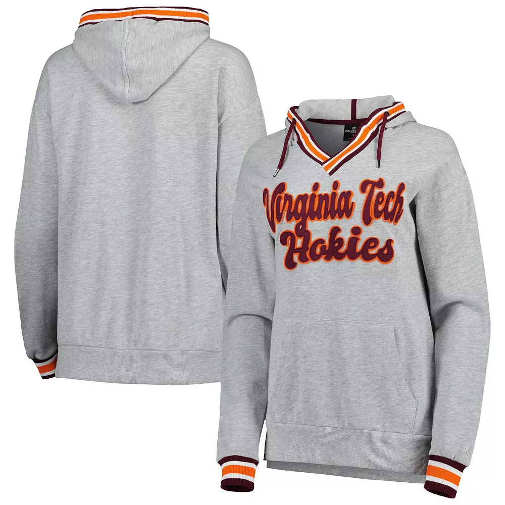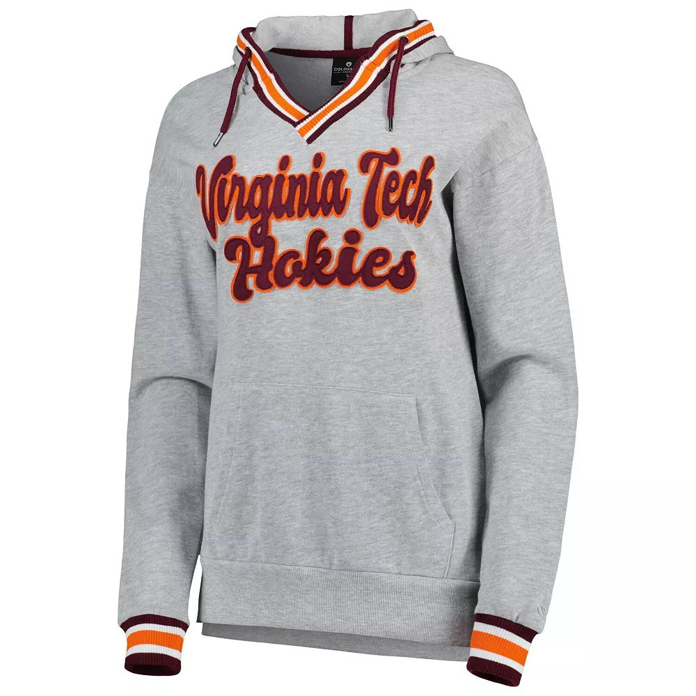 During cooler weather, draw the eye to your Virginia Tech Hokies spirit with this Andy V-neck pullover hoodie from Colosseum. It features embroidered Virginia Tech Hokies appliques accentuated by the rib-knit stripes in team colors. An adjustable hood, pouch pocket and droptail hem also provide added warmth when temperatures cool even more.