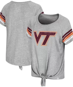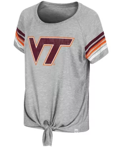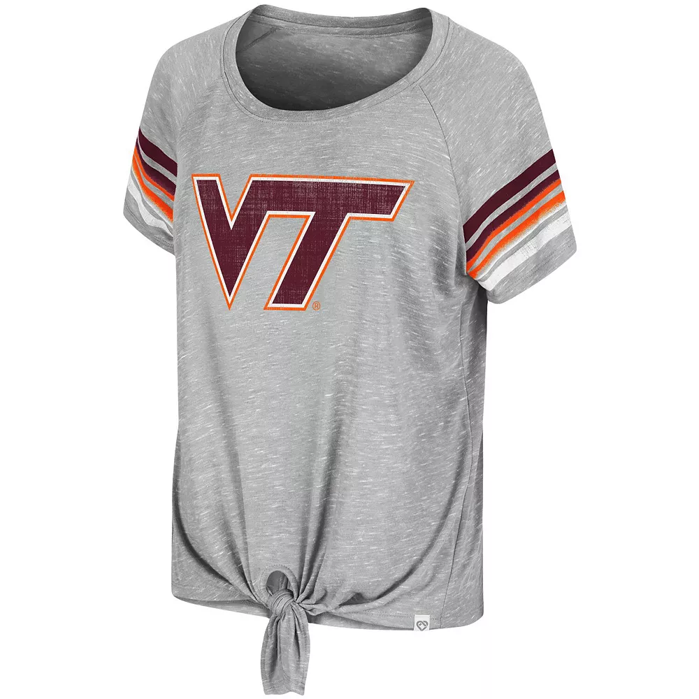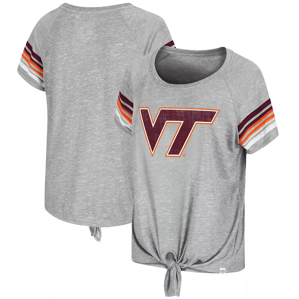 Look fashionable on Virginia Tech Hokies game day in this Boo You Knotted T-shirt from Colosseum. It features printed Virginia Tech Hokies graphics accentuated by the stripes in coordinating team colors and a chic tie detail in the front. Plus, raglan sleeves provide a little extra room for more comfortable movement.