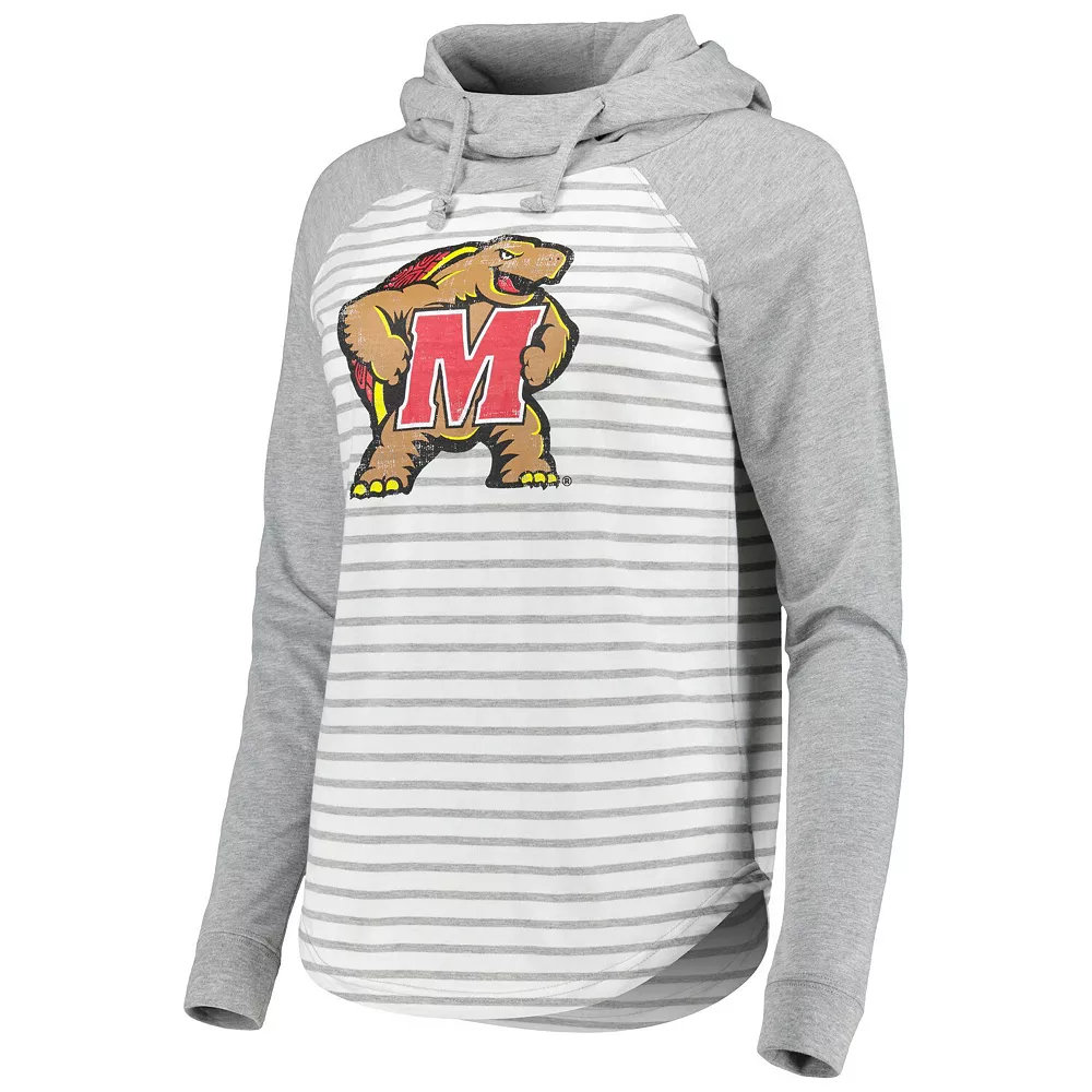 Show your unwavering fandom of the Maryland Terrapins by wearing this Gloria Long Sleeve Hoodie T-Shirt from Colosseum. It features a scuba neck and raglan sleeves, which offer an extra layer of warmth and increased arm mobility so you can cheer on effortlessly. Recognizable Maryland Terrapins graphics will have you looking like their biggest supporter on game day.