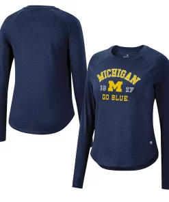 Show that the Michigan Wolverines colors run deep each time you sport this bold Core Arch Established Date Harlow T-shirt from Colosseum. It features unmistakable Michigan Wolverines graphics printed across the chest along with raglan sleeves for added ease of movement. In addition, the rounded hem ensures this spirited team tee rests comfortably at the waist.