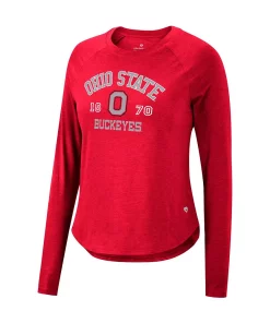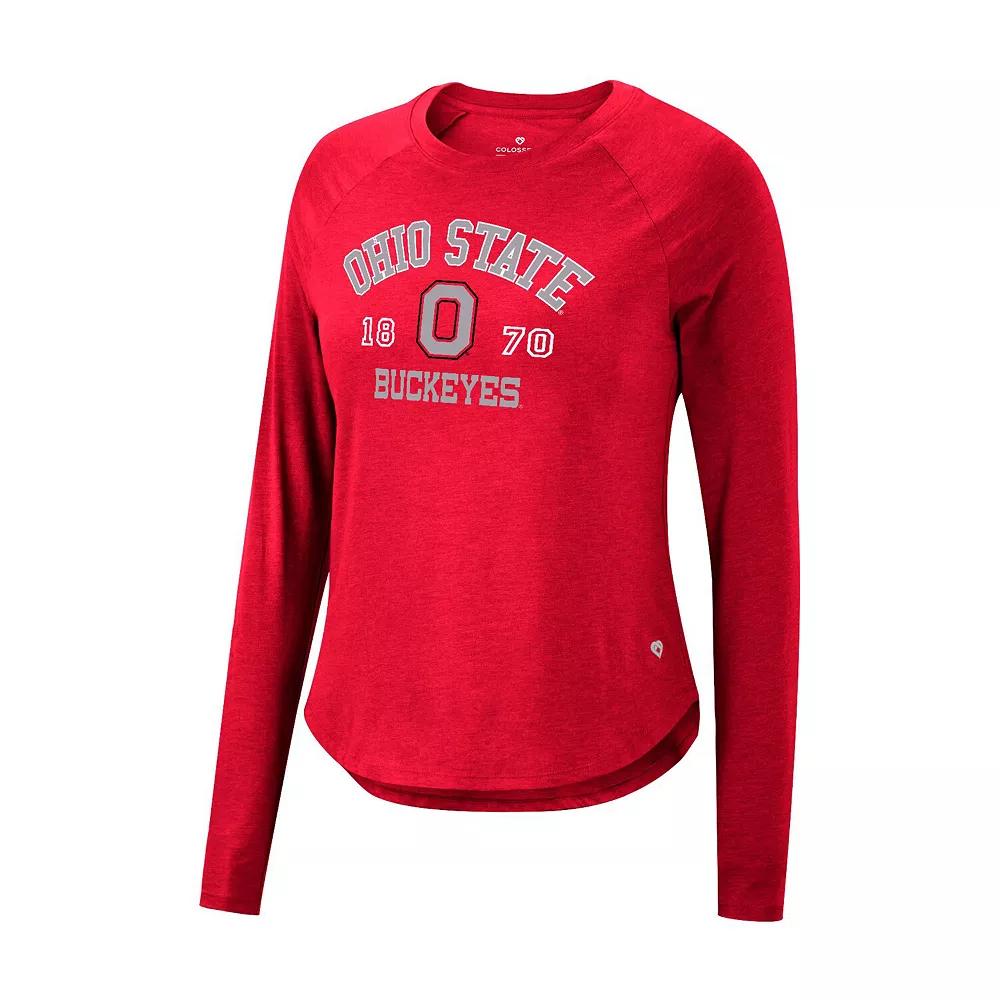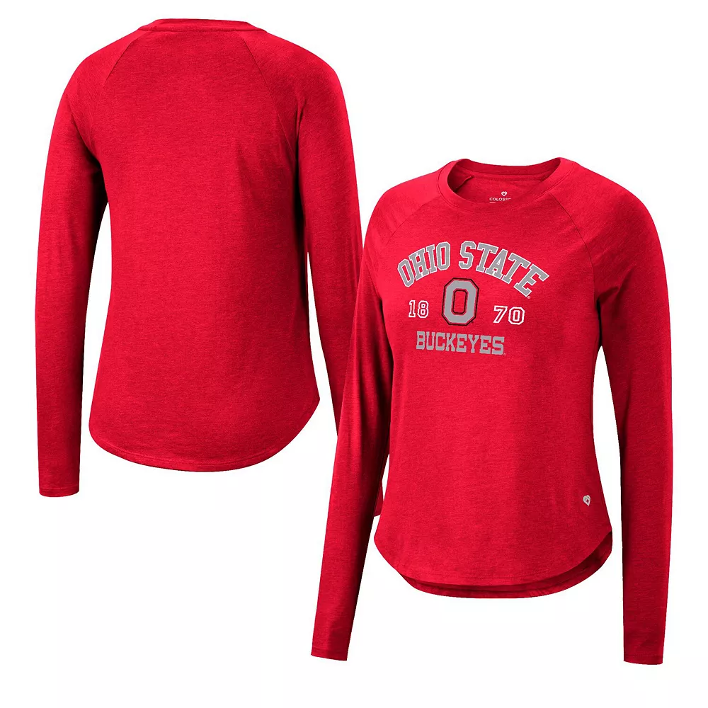 Show that the Ohio State Buckeyes colors run deep each time you sport this bold Core Arch Established Date Harlow T-shirt from Colosseum. It features unmistakable Ohio State Buckeyes graphics printed across the chest along with raglan sleeves for added ease of movement. In addition, the rounded hem ensures this spirited team tee rests comfortably at the waist.