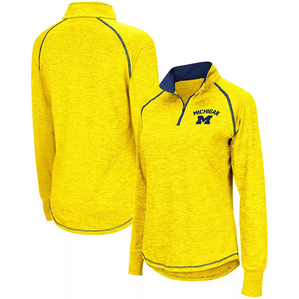 Give a boost of Michigan Wolverines excitement to your array of tops this season when you get your hands on this Bikram quarter-zip jacket from Colosseum. You’ll love cheering for your favorite team in this piece because it features vivid Michigan Wolverines graphics that will make you feel like a part of the team. No one will be able to question your dedication when they spot you in this one-of-a-kind pullover!