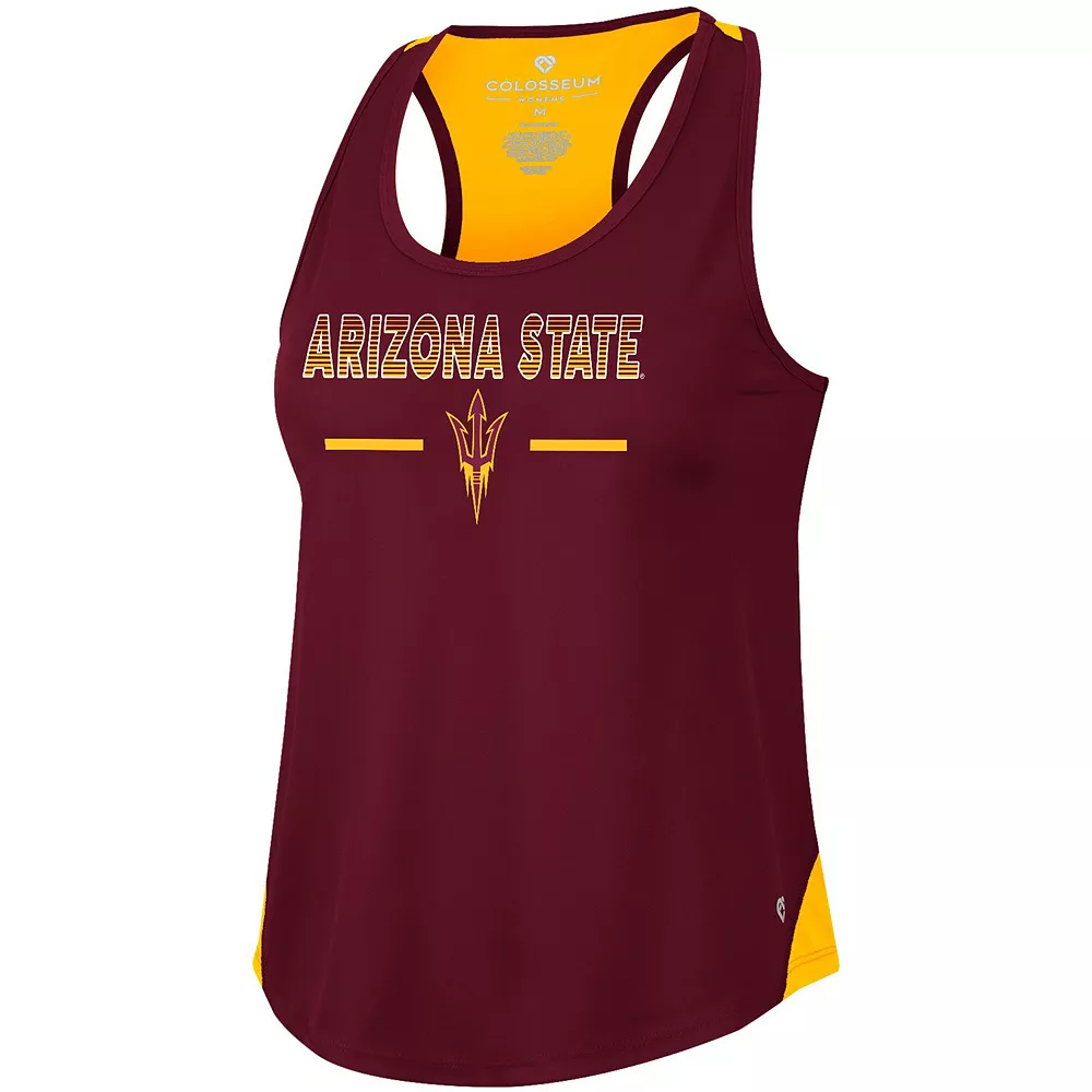 Hit the pavement in Arizona State Sun Devils style with this Sachs 2-Hit tank top. Built by Colosseum, it features bold graphics and a racerback design for extra cooling. Race day or game day, rep the Arizona State Sun Devils with this spirited top.