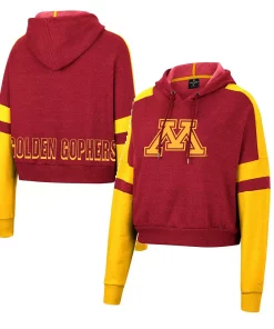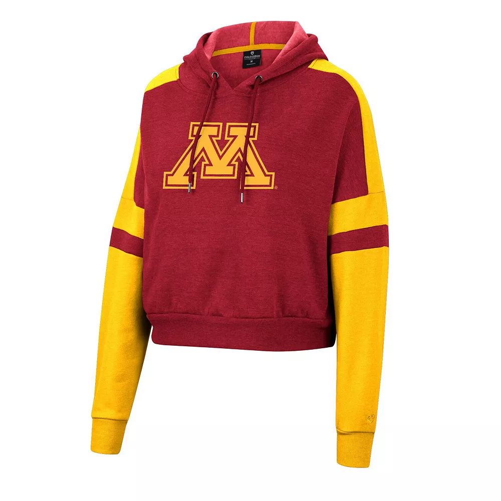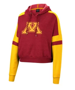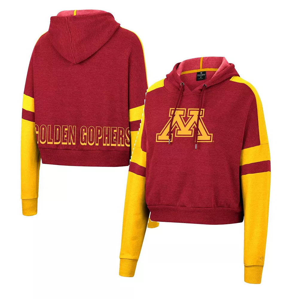 Gear up for Minnesota Golden Gophers game day in this Throwback pullover hoodie from Colosseum. Its cropped hem adds a stylish touch while the team’s iconic logo lets everyone know about your die-hard fandom. Contrasting stripes in team colors going down the sleeves provide the perfect finishing touch to this Minnesota Golden Gophers top.