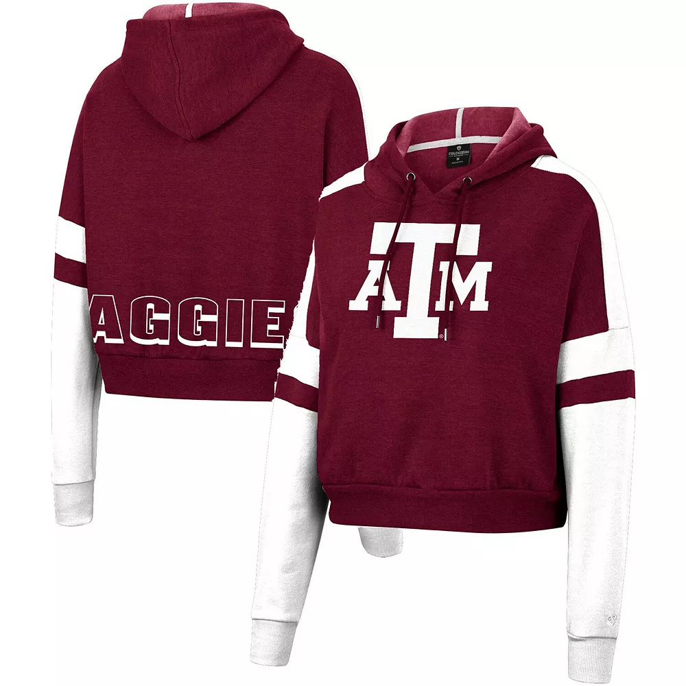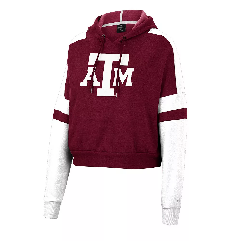 Gear up for Texas A&M Aggies game day in this Throwback pullover hoodie from Colosseum. Its cropped hem adds a stylish touch while the team’s iconic logo lets everyone know about your die-hard fandom. Contrasting stripes in team colors going down the sleeves provide the perfect finishing touch to this Texas A&M Aggies top.