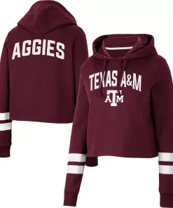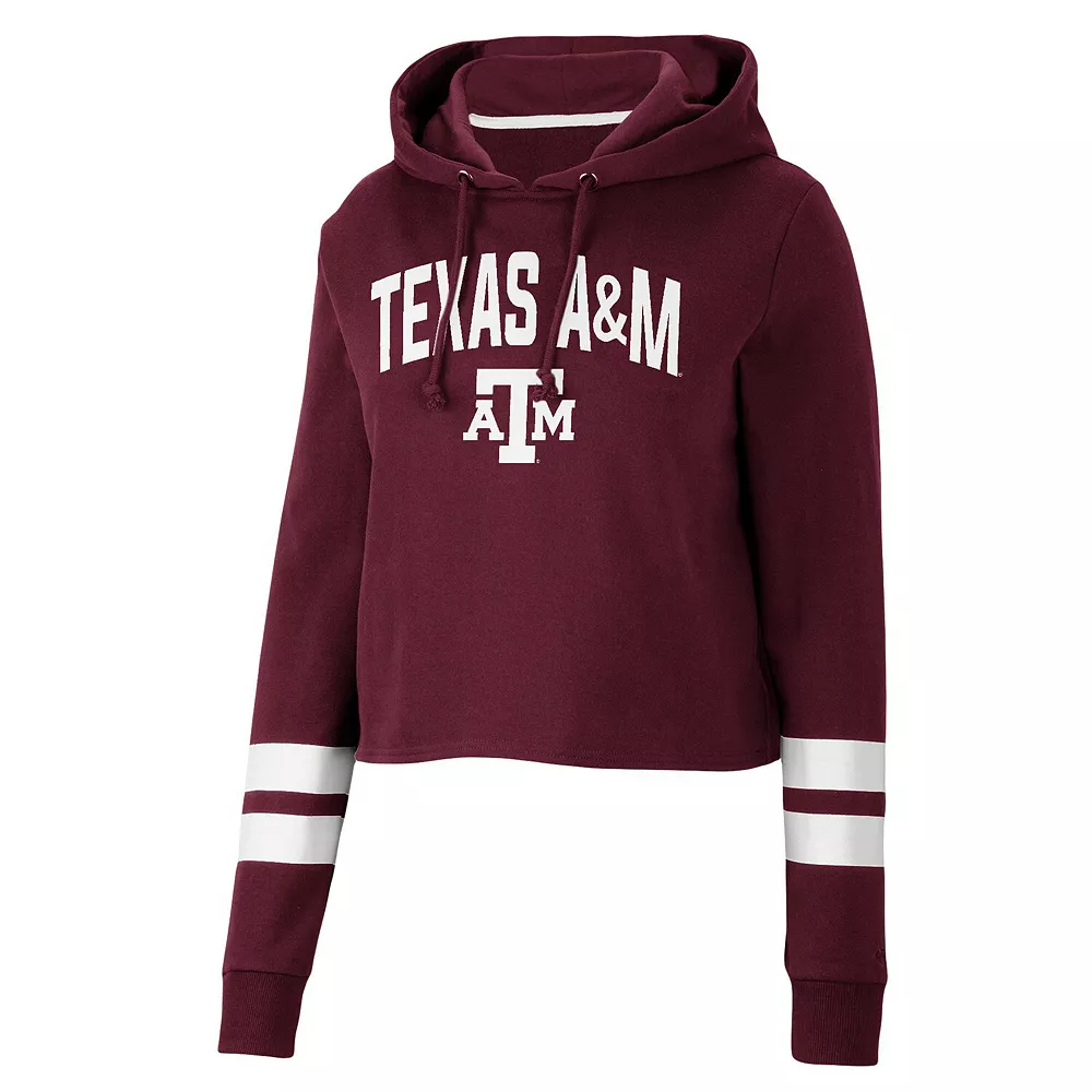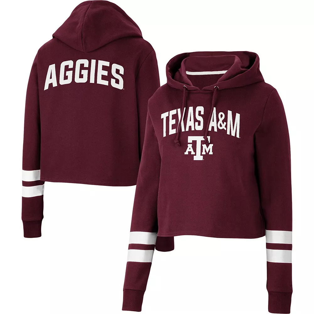 Gear up for a cool game day with this Texas A&M Aggies Throwback hoodie from Colosseum. It features a stylish cropped hem and a hood in case you need a little extra coverage. Plus, the contrasting sleeve stripes complement the signature Texas A&M Aggies graphics on the front and back for a dedicated fan look.