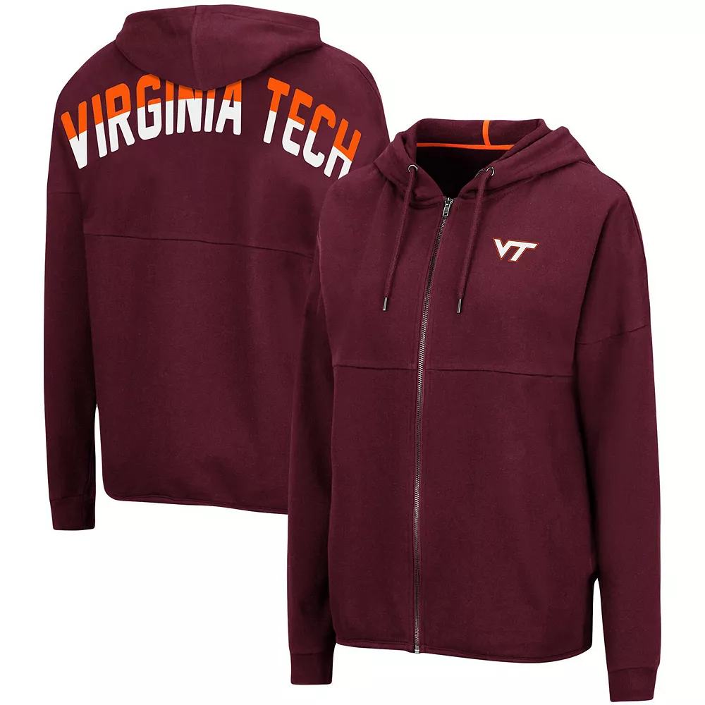 Ensure your collegiate loyalty is well represented by throwing on this 2-Hit full-zip hoodie from Colosseum. The soft, blended fabric and fleece lining offer supreme comfort in chilly temperatures. Plus, the bold Virginia Tech Hokies graphics across the back give you a unique game day look.