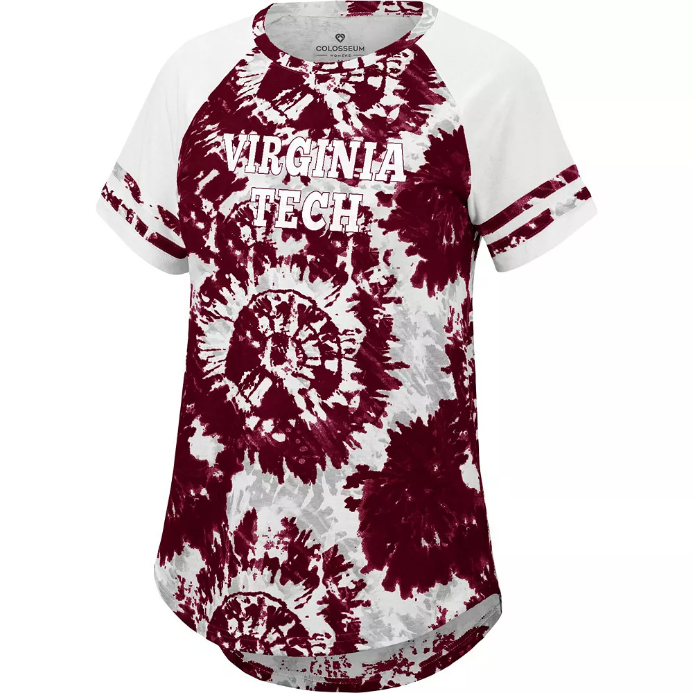 For a charming Virginia Tech Hokies game day get up, this Annie Oversized T-shirt by Colosseum is sure to draw the eye. It features roomy raglan sleeves for a natural range of motion, and a rounded droptail hem for extra coverage. Best of all, this tee features a trendy tie-dye pattern in signature Virginia Tech Hokies colors, and bold team graphics that easily flex your fandom.