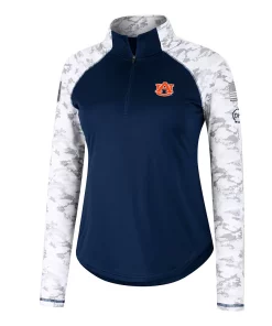 Offer your full support to our military members while also emphasizing your Auburn Tigers fandom with this OHT Flash quarter-zip jacket from Colosseum. The main body is comprised of authentic team colors while the sleeves feature a vibrant arctic camo design, which is separated by contrast-color stitching. The raglan sleeves and mock neck work together to make this patriotic top the most comfortable option for representing the Auburn Tigers.