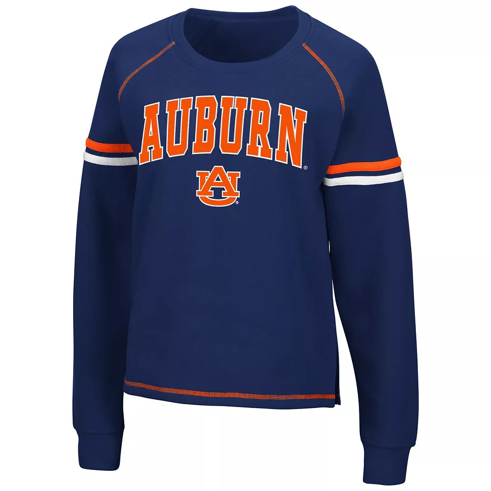 Effortlessly show loyalty to the Auburn Tigers when you wear this Sweep Pass Sleeve Stripe pullover sweatshirt from Colosseum. It features large Auburn Tigers graphics highlighted by the contrast-color stitching and coordinating stripes. In addition, raglan sleeves provide some extra room for better movement.