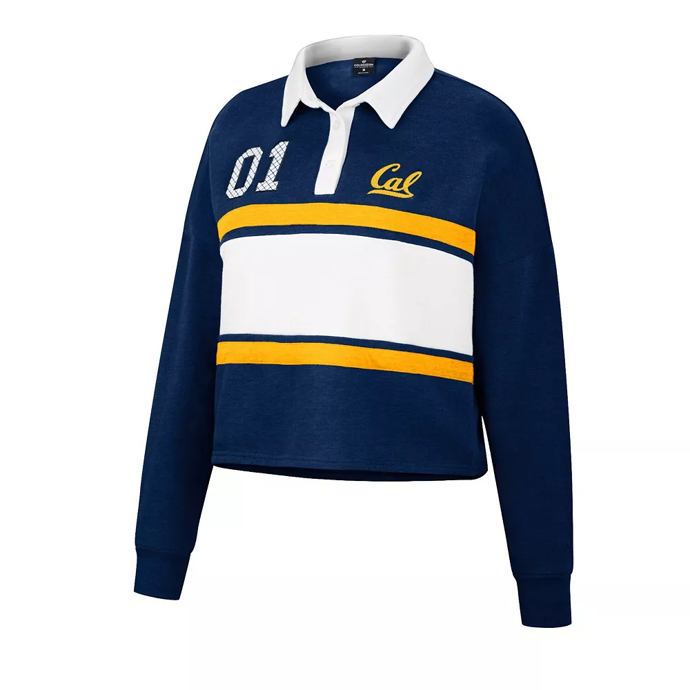 Merge the comfort of a long sleeve tee with classic polo details by wearing this I Love My Job Rugby shirt from Colosseum. It features stripes in team colors that highlight the embroidered Cal Bears logo. Soft fabric also makes this Cal Bears top comfortable to wear all day.