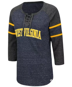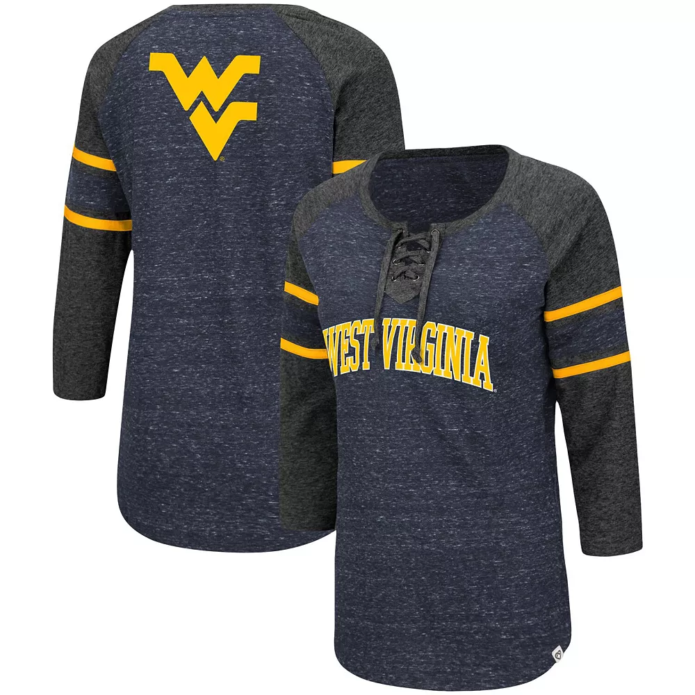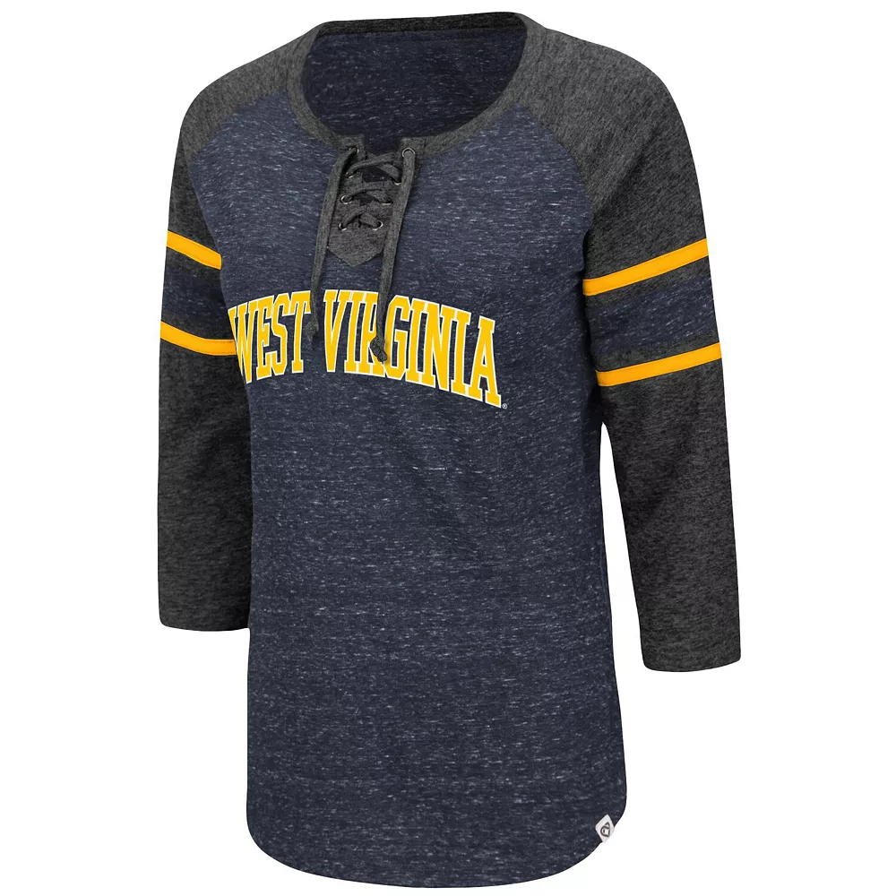Showcase your devotion to the West Virginia Mountaineers with a trendy look by reaching for this Scienta Pasadena 3/4 Sleeve Space Dye T-shirt. It features bold West Virginia Mountaineers graphics, a lace-up neckline and raglan sleeves for a comforting fit with each wear. Sport this two-toned tee and enjoy a cool, casual display of your unwavering commitment to your squad!
