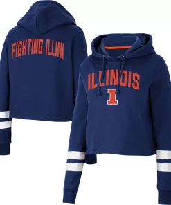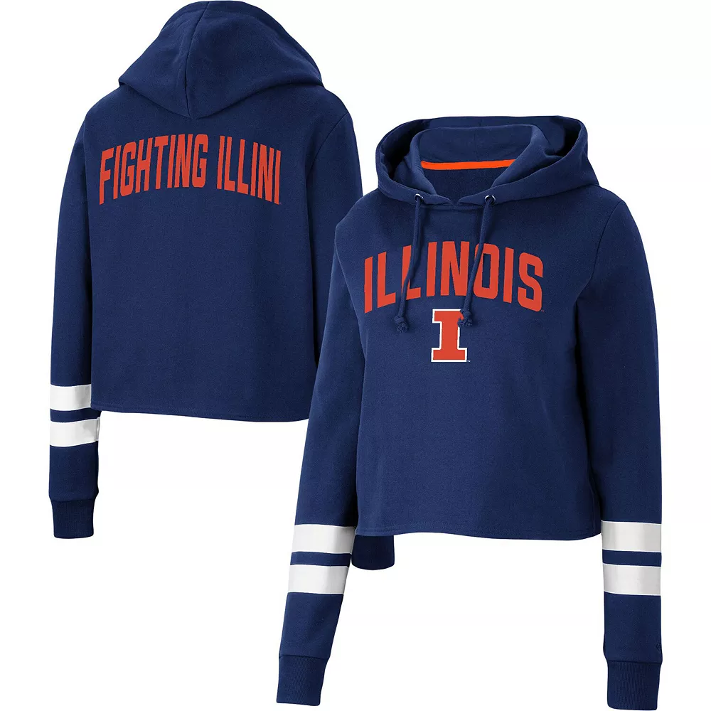 Gear up for a cool game day with this Illinois Fighting Illini Throwback hoodie from Colosseum. It features a stylish cropped hem and a hood in case you need a little extra coverage. Plus, the contrasting sleeve stripes complement the signature Illinois Fighting Illini graphics on the front and back for a dedicated fan look.