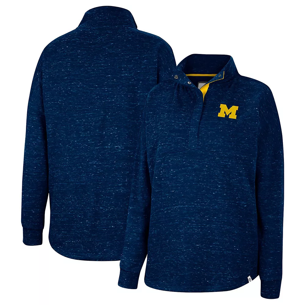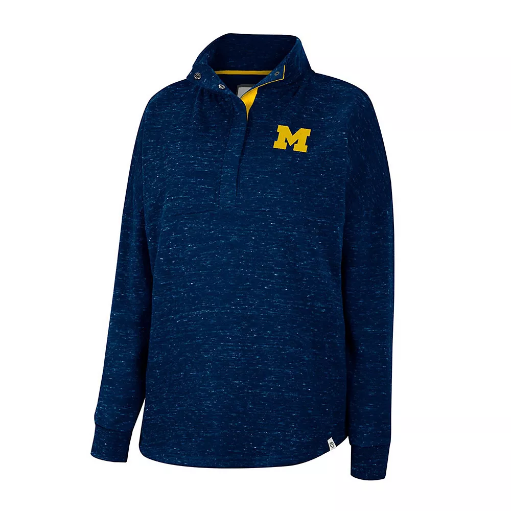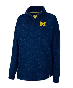 For coverage, style and ease of wear, grab this Colosseum Natalie quarter-snap top. Subtle Michigan Wolverines graphics are complemented by an allover speckled pattern. Plus, dropped shoulders increase your arm room for extra comfort.