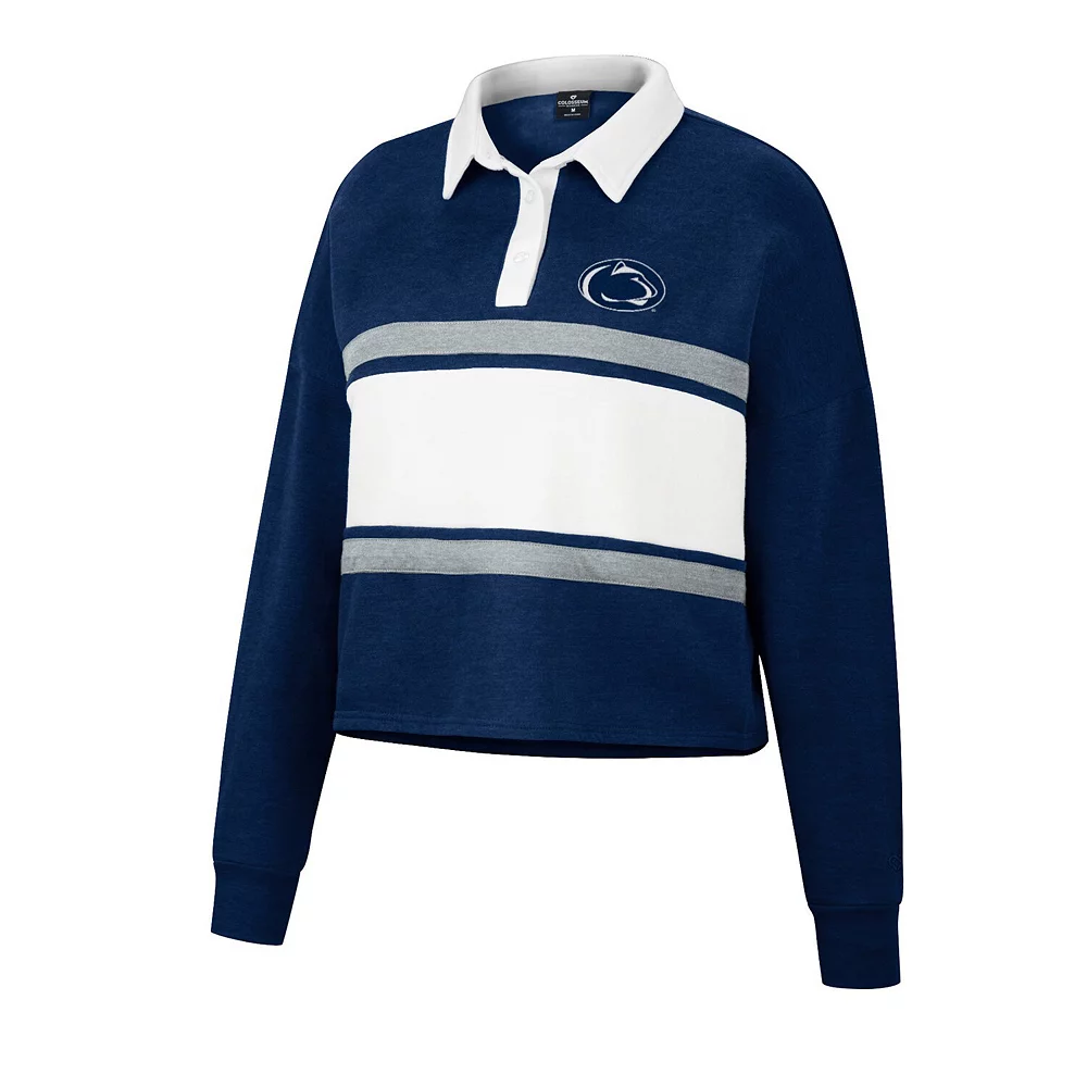 Merge the comfort of a long sleeve tee with classic polo details by wearing this I Love My Job Rugby shirt from Colosseum. It features stripes in team colors that highlight the embroidered Penn State Nittany Lions logo. Soft fabric also makes this Penn State Nittany Lions top comfortable to wear all day.