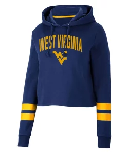 Gear up for a cool game day with this West Virginia Mountaineers Throwback hoodie from Colosseum. It features a stylish cropped hem and a hood in case you need a little extra coverage. Plus, the contrasting sleeve stripes complement the signature West Virginia Mountaineers graphics on the front and back for a dedicated fan look.