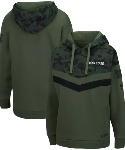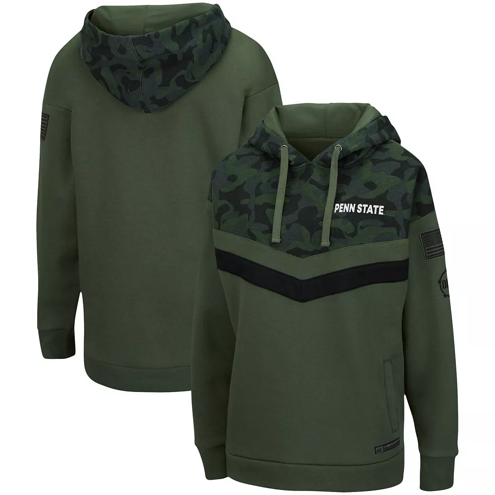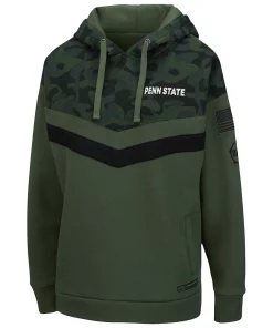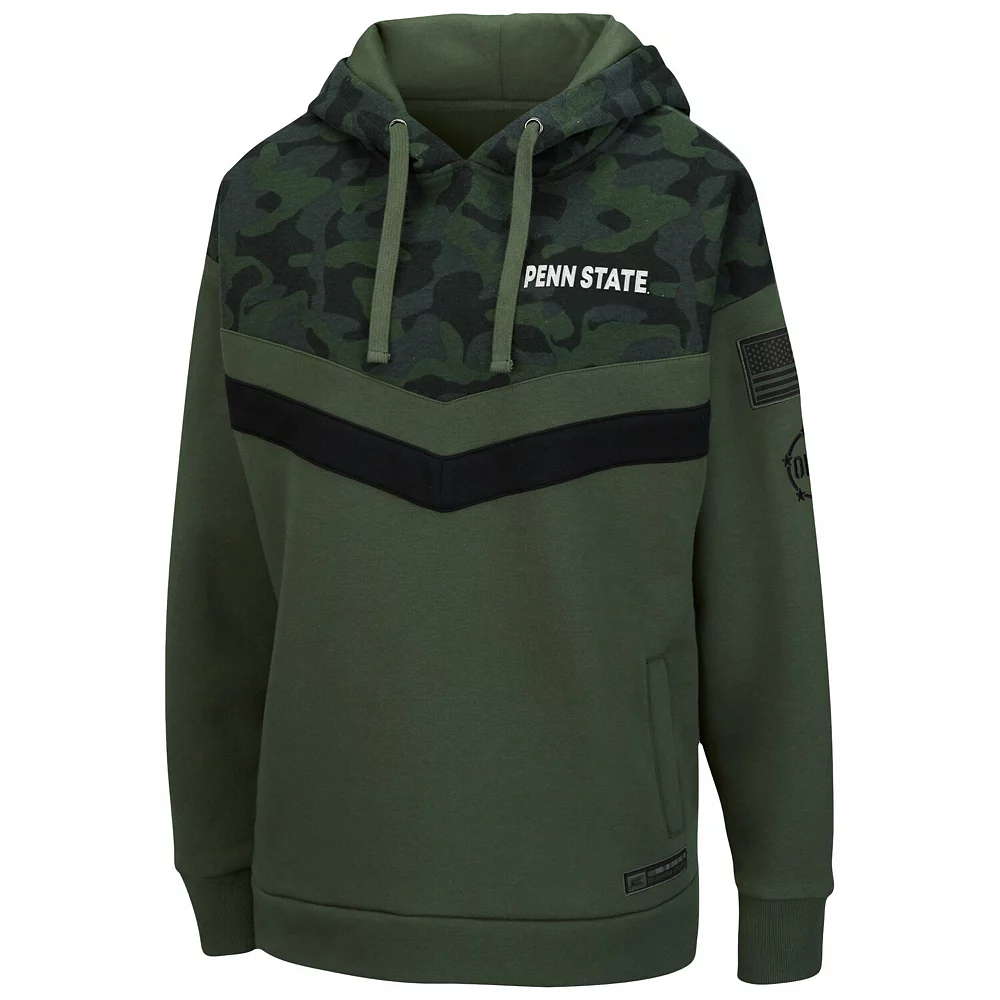 Stay warm in stealth mode with this Penn State Nittany Lions Extraction Chevron pullover hoodie from Colosseum. It features OHT Military Appreciation graphics on the left sleeve and the Penn State Nittany Lions logo accentuated by a camo design. An adjustable hood also provides additional coverage when needed.
