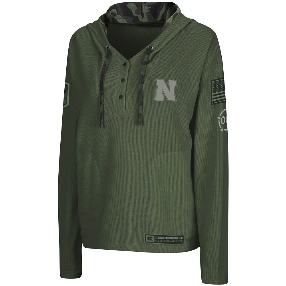 Show off your pride in the Nebraska Huskers and those who defend our country with this OHT Military Appreciation Thermal Henley pullover hoodie from Colosseum. It features Nebraska Huskers graphics printed on the front, an American flag embroidered on the left sleeve and a sublimated camo pattern on the hood’s interior and drawstrings. The lightweight design will also help keep you at the ideal temperature.