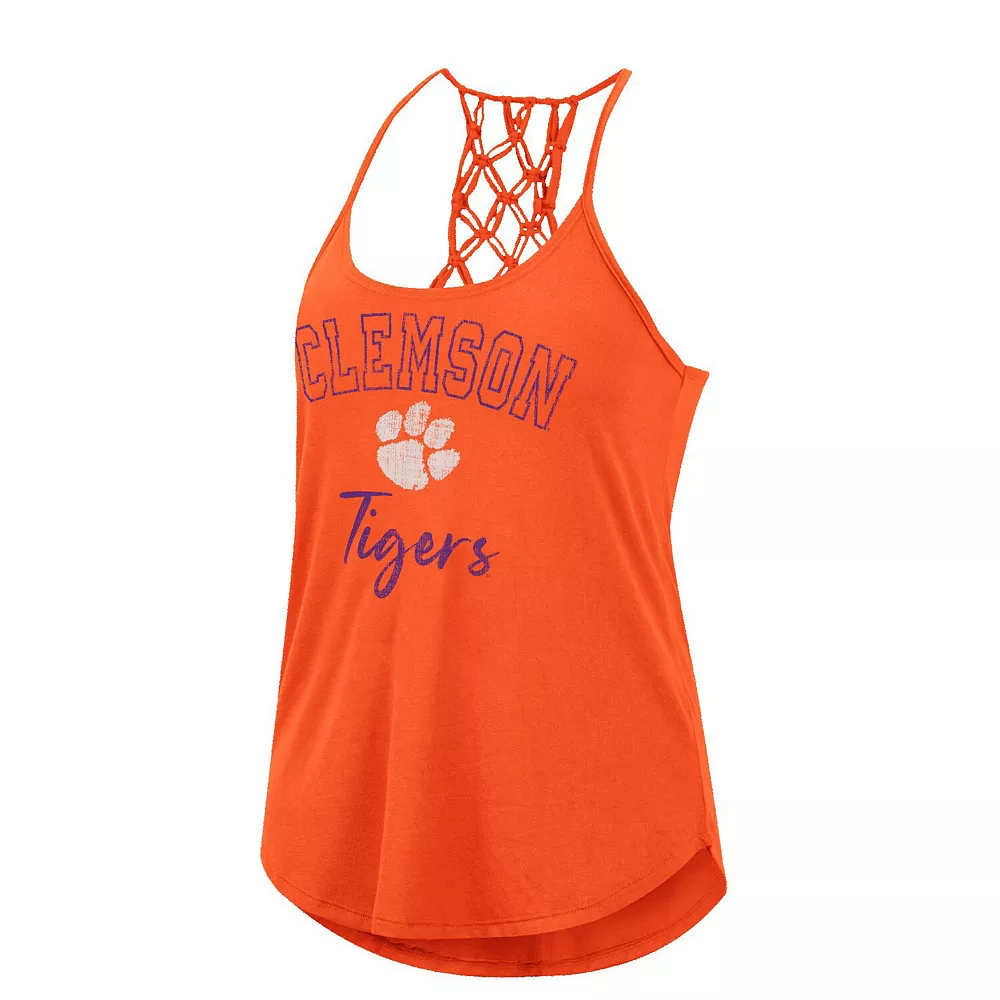 Have some fun in the sun while flaunting your Clemson Tigers style in this Natasha scoop neck tank top from Colosseum. It offers a lightweight fabric, racerback design and spaghetti straps to keep you fresh all day long. Plus, the vintage-inspired Clemson Tigers graphics and macrame back make it the ultimate warm-weather favorite.