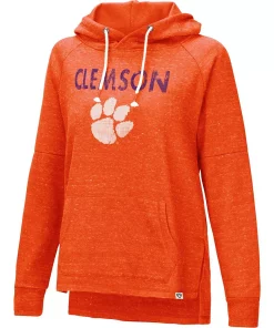 This cozy Colosseum Nollie hoodie is ready to show off your Clemson Tigers pride. It features a relaxed fit thanks to the raglan sleeves and a droptail hem for extra coverage. Distressed Clemson Tigers graphics mesh well with the slub design, creating a harmonious pullover that has you looking forward to cooler temperatures.