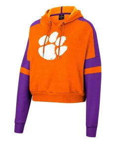 Gear up for Clemson Tigers game day in this Throwback pullover hoodie from Colosseum. Its cropped hem adds a stylish touch while the team’s iconic logo lets everyone know about your die-hard fandom. Contrasting stripes in team colors going down the sleeves provide the perfect finishing touch to this Clemson Tigers top.