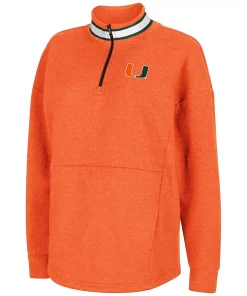 Keep your Miami Hurricanes spirit going strong during the chilly months with this Alice 2-Hit quarter-zip jacket from Colosseum. Its fleece lining will keep you warm and cozy, while the Miami Hurricanes graphics and colors attest to your never-ending loyalty. Regardless of the temperature outside, your fandom will be burning brightly!