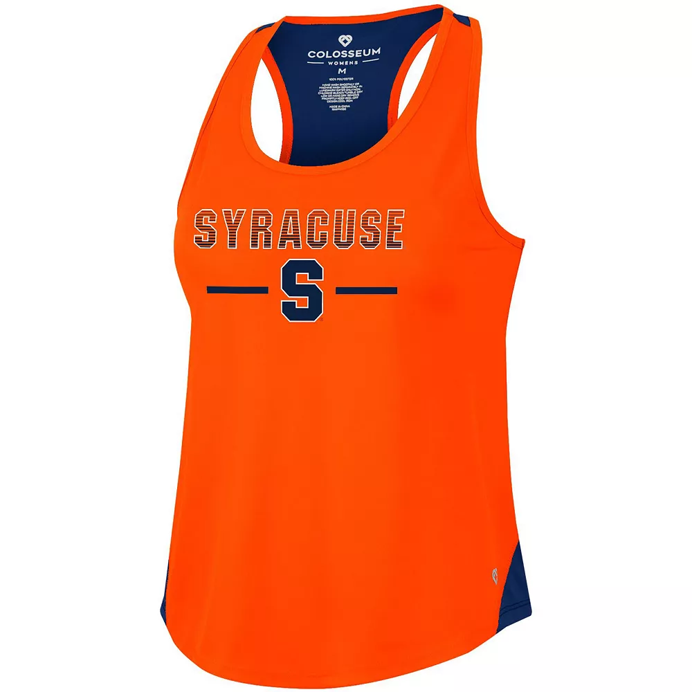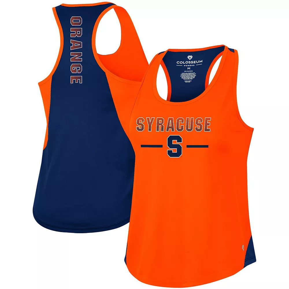 Hit the pavement in Syracuse Orange style with this Sachs 2-Hit tank top. Built by Colosseum, it features bold graphics and a racerback design for extra cooling. Race day or game day, rep the Syracuse Orange with this spirited top.