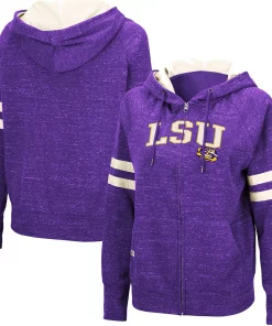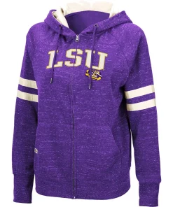 Effortlessly illustrate your die-hard devotion to the LSU Tigers with this Colosseum full-zip hoodie. It features an eye-catching marled pattern, large LSU Tigers lettering across the chest and two front pockets for a classic look. In addition, integrated fleece lining and a comforting midweight design contribute to the overall cozy feel.