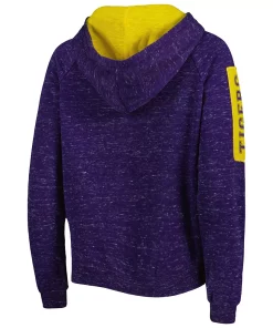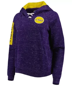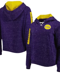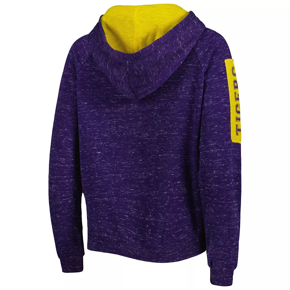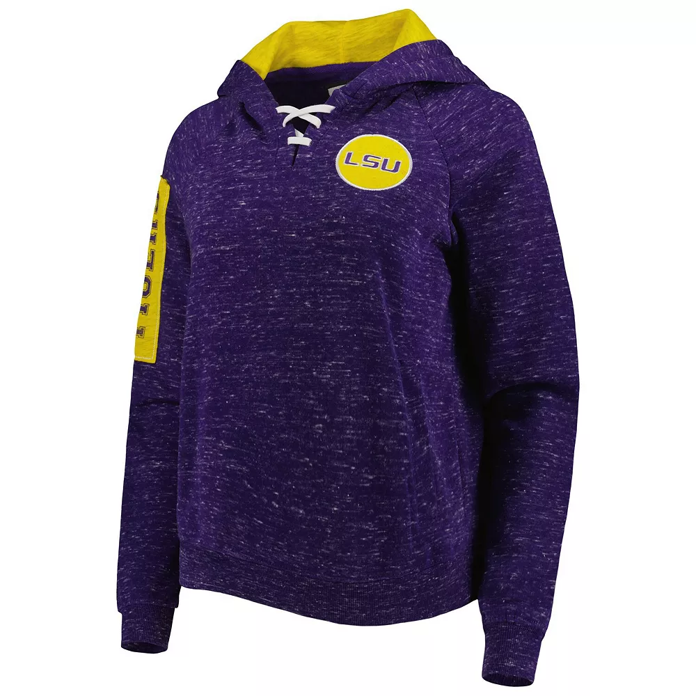 Add an exciting piece of LSU Tigers gear to your rotation with this The Devil Speckle Lace-Placket raglan pullover hoodie from Colosseum. The stitched and embroidered team appliques go perfectly with the distressed graphics to give this top a unique look. It also features slub fabric and a faux lace-up to give you the most stylish piece of LSU Tigers game day apparel.