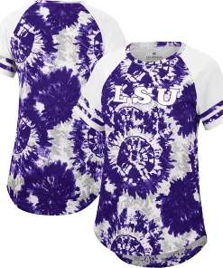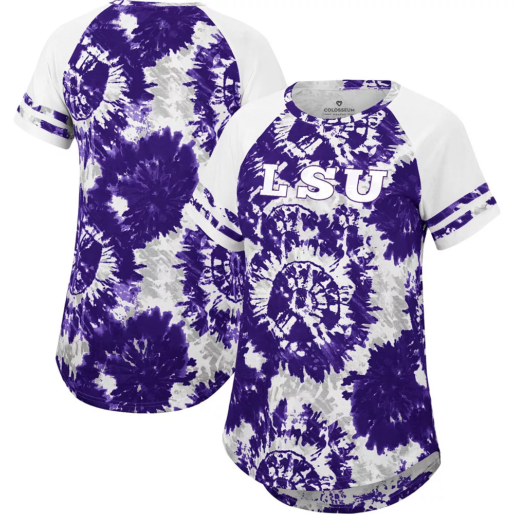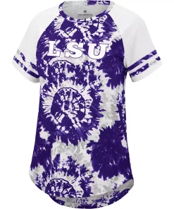 For a charming LSU Tigers game day get up, this Annie Oversized T-shirt by Colosseum is sure to draw the eye. It features roomy raglan sleeves for a natural range of motion, and a rounded droptail hem for extra coverage. Best of all, this tee features a trendy tie-dye pattern in signature LSU Tigers colors, and bold team graphics that easily flex your fandom.