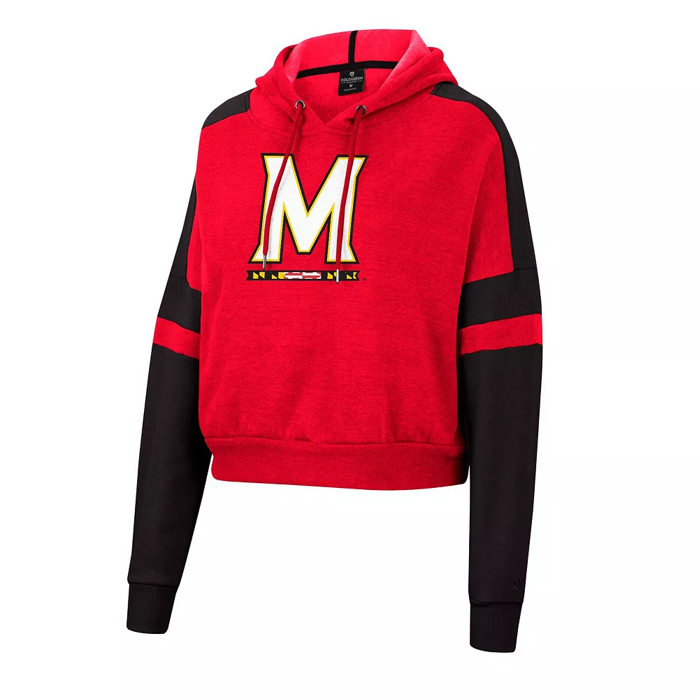 Gear up for Maryland Terrapins game day in this Throwback pullover hoodie from Colosseum. Its cropped hem adds a stylish touch while the team’s iconic logo lets everyone know about your die-hard fandom. Contrasting stripes in team colors going down the sleeves provide the perfect finishing touch to this Maryland Terrapins top.
