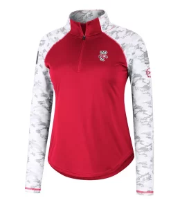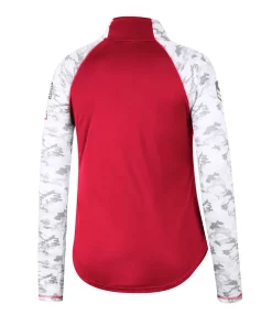 Offer your full support to our military members while also emphasizing your Wisconsin Badgers fandom with this OHT Flash quarter-zip jacket from Colosseum. The main body is comprised of authentic team colors while the sleeves feature a vibrant arctic camo design, which is separated by contrast-color stitching. The raglan sleeves and mock neck work together to make this patriotic top the most comfortable option for representing the Wisconsin Badgers.