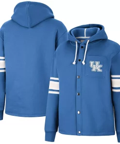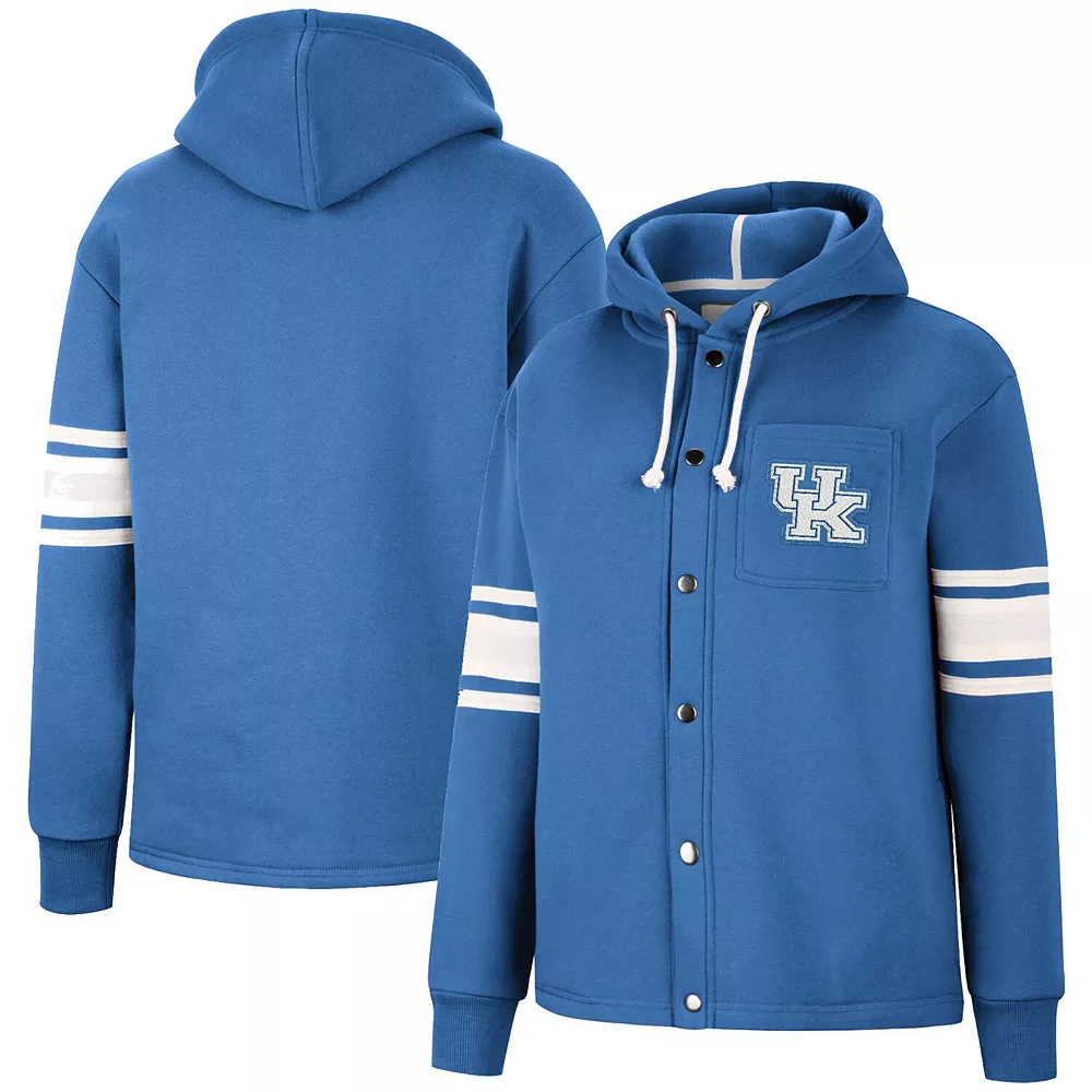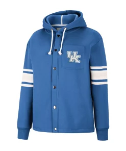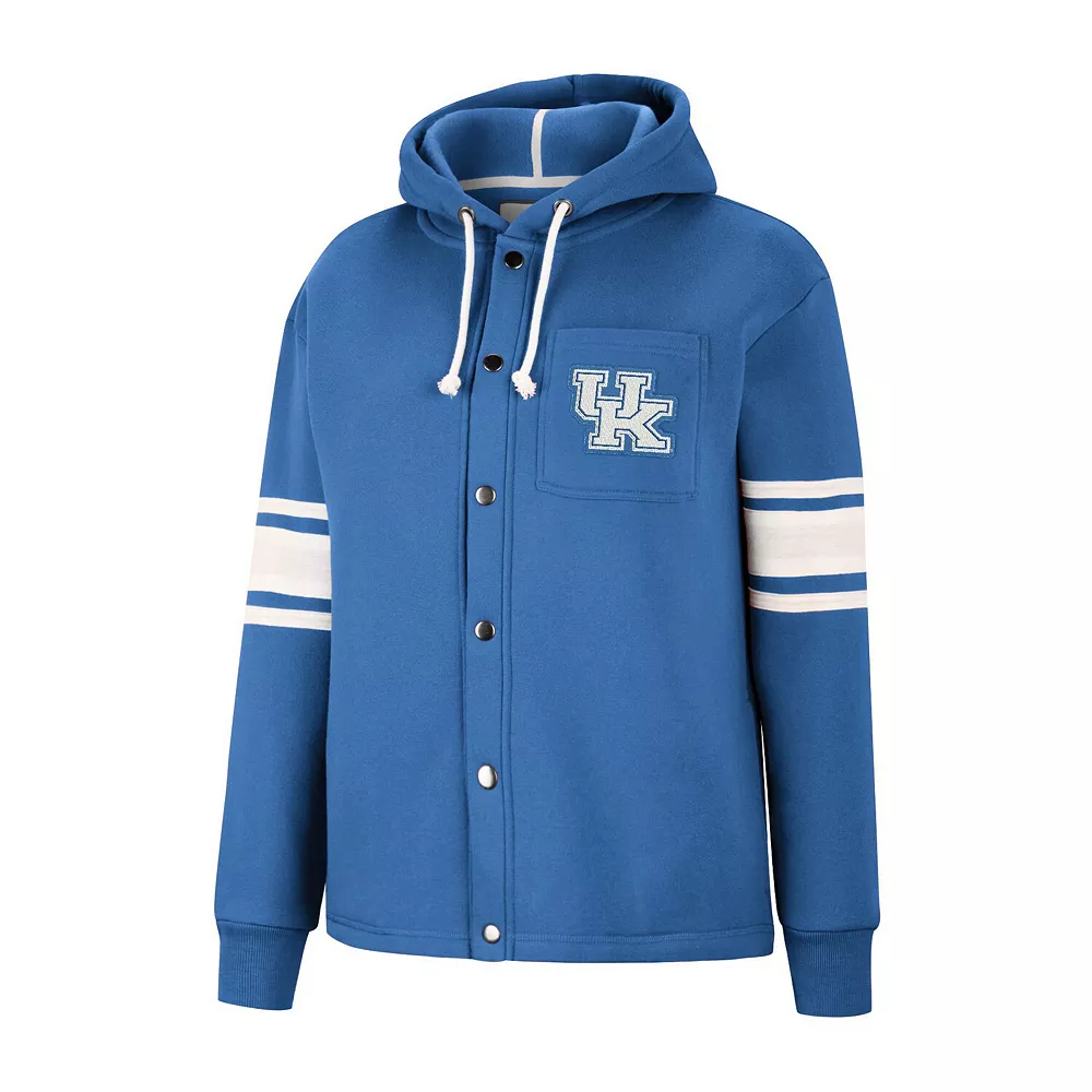 Layer up as you enjoy watching your Kentucky Wildcats in this Colosseum Mia full-snap jacket. Its soft hood and midweight design make it perfect for dedicated fans to wear on chilly game days. Decorated in signature Kentucky Wildcats colors, this jacket’s sleeve stripes help the subtle Kentucky Wildcats graphics stand out.