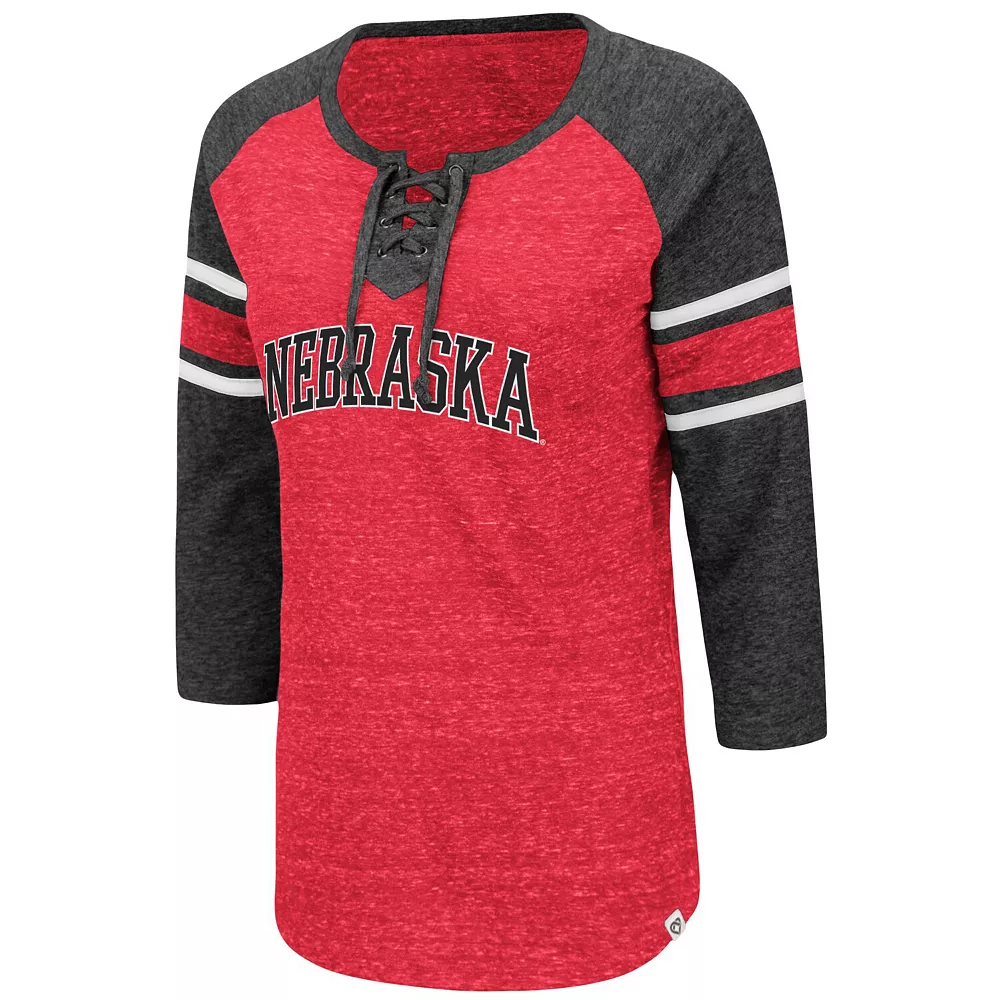 Showcase your devotion to the Nebraska Huskers with a trendy look by reaching for this Scienta Pasadena 3/4 Sleeve Space Dye T-shirt. It features bold Nebraska Huskers graphics, a lace-up neckline and raglan sleeves for a comforting fit with each wear. Sport this two-toned tee and enjoy a cool, casual display of your unwavering commitment to your squad!