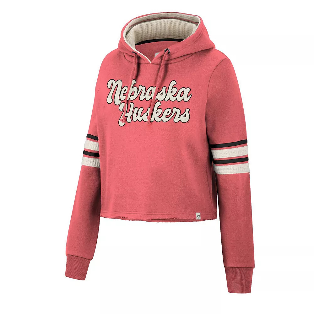 Layer up in chic style and show your support for the Nebraska Huskers with this Retro cropped hoodie from Colosseum. This bold pullover feature a team wordmark embroidered on the chest and comes in their classic color for an unquestionable display of spirit. Plus, the unfinished hem offers a unique twist on your fandom, allowing you to add an extra layer to your team-inspired look before the next game.