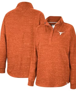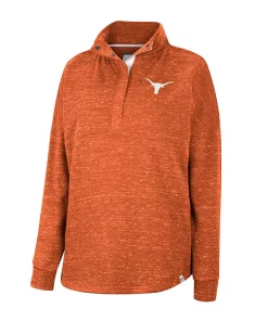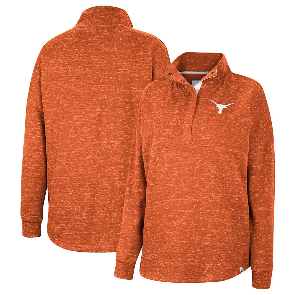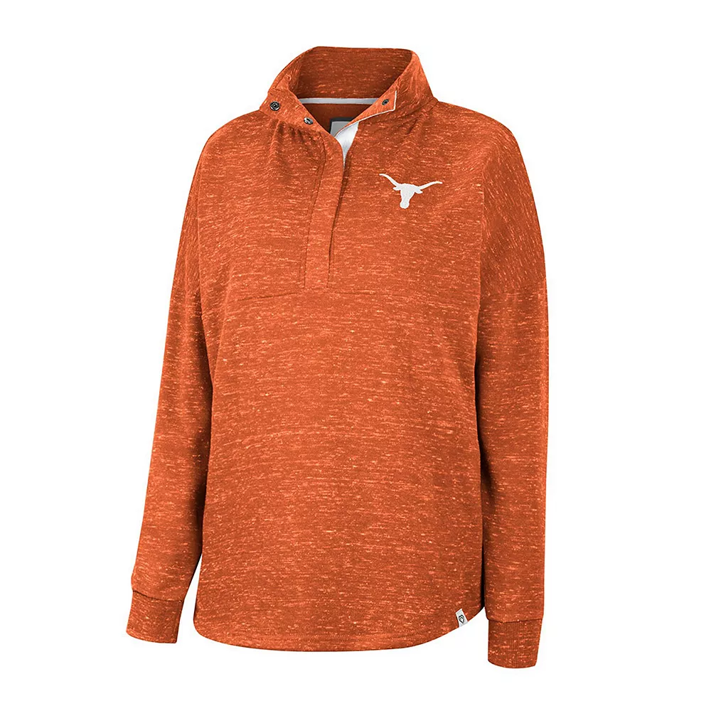For coverage, style and ease of wear, grab this Colosseum Natalie quarter-snap top. Subtle Texas Longhorns graphics are complemented by an allover speckled pattern. Plus, dropped shoulders increase your arm room for extra comfort.