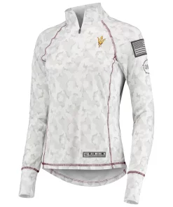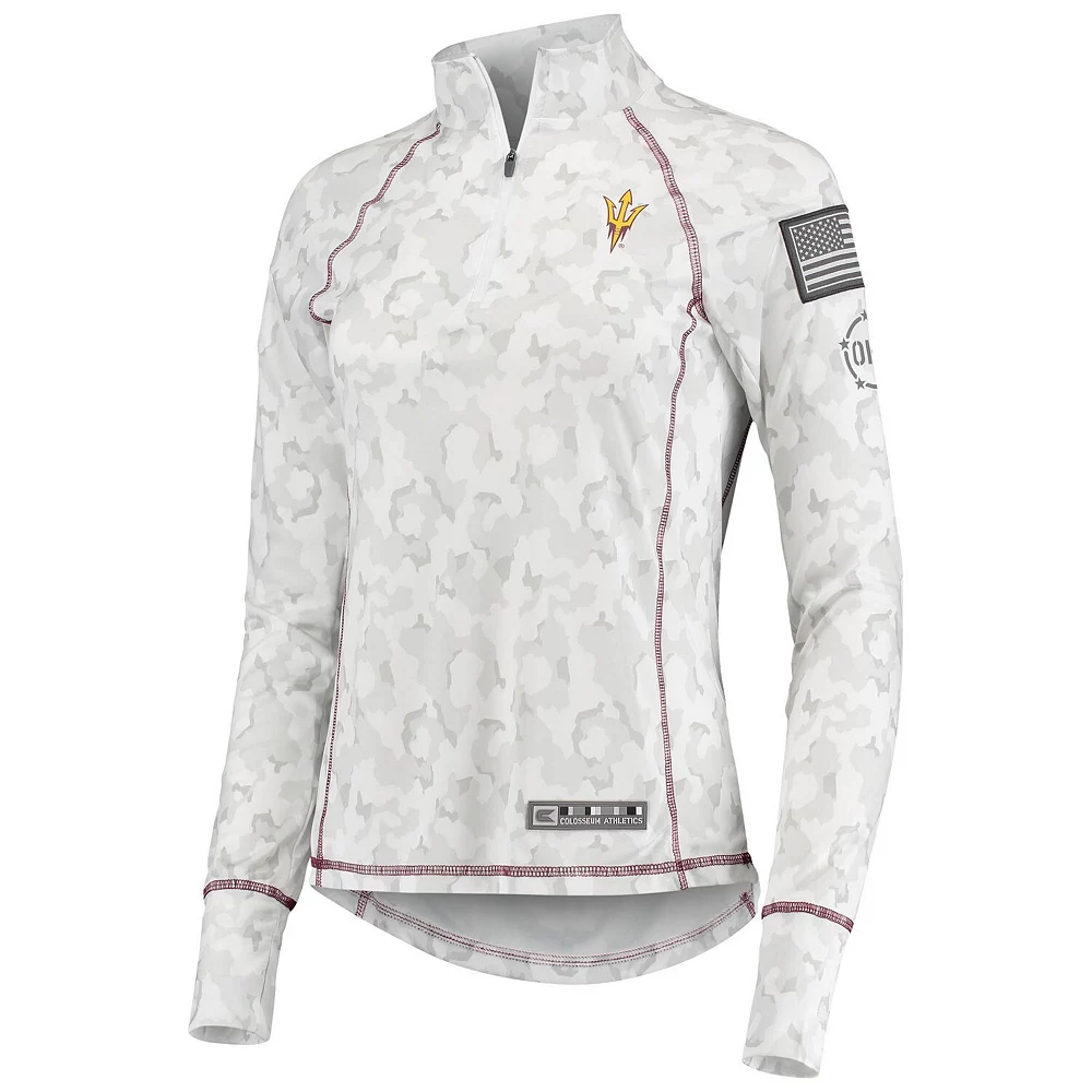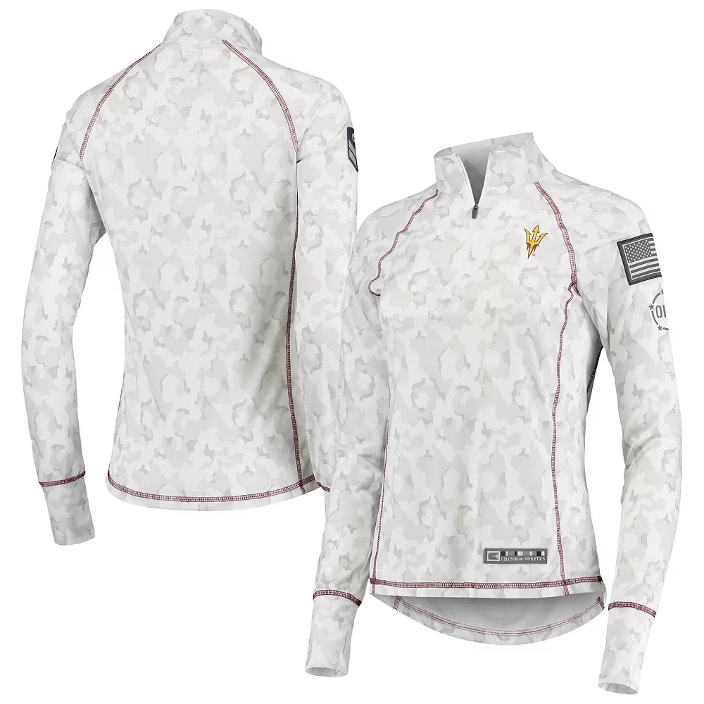 No matter where you watch the next Arizona State Sun Devils game, make sure your look is as strong as ever in this OHT Military Appreciation Officer Arctic Camo 1/4-zip jacket. This piece of Colosseum gear features a distinct camo design and the Arizona State Sun Devils logo is proudly displayed on the chest. Sport this over your go-to team tee for a complete look you will be proud to show off this season.