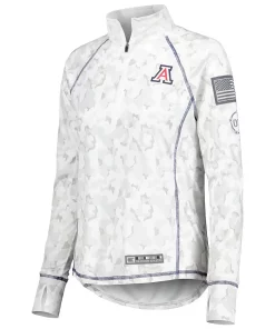 No matter where you watch the next Arizona Wildcats game, make sure your look is as strong as ever in this Operation Hat Trick Military Appreciation Officer Arctic Camo quarter-zip jacket. This piece of Colosseum gear features a distinct camo design and the Arizona Wildcats logo is proudly displayed on the chest. The raglan sleeves give you more maneuverability, and the contrasting trim adds a touch of color to an already stylish piece.