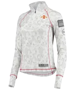 No matter where you watch the next Iowa State Cyclones game, make sure your look is as strong as ever in this OHT Military Appreciation Officer Arctic Camo 1/4-zip jacket. This piece of Colosseum gear features a distinct camo design and the Iowa State Cyclones logo is proudly displayed on the chest. Sport this over your go-to team tee for a complete look you will be proud to show off this season.