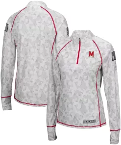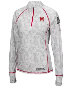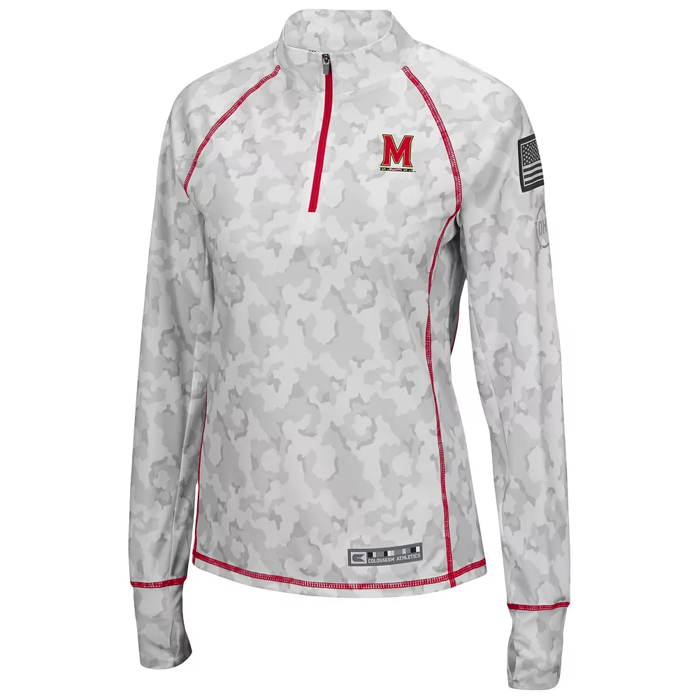 No matter where you watch the next Maryland Terrapins game, make sure your look is as strong as ever in this OHT Military Appreciation Officer Arctic Camo 1/4-zip jacket. This piece of Colosseum gear features a distinct camo design and the Maryland Terrapins logo is proudly displayed on the chest. Sport this over your go-to team tee for a complete look you will be proud to show off this season.