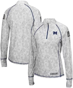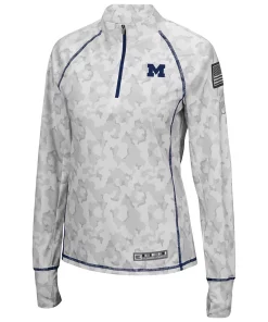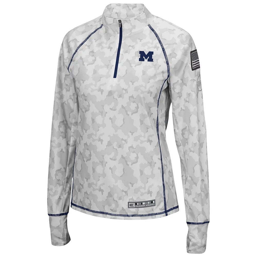 No matter where you watch the next Michigan Wolverines game, make sure your look is as strong as ever in this OHT Military Appreciation Officer Arctic Camo 1/4-zip jacket. This piece of Colosseum gear features a distinct camo design and the Michigan Wolverines logo is proudly displayed on the chest. Sport this over your go-to team tee for a complete look you will be proud to show off this season.
