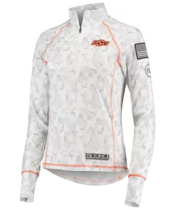 No matter where you watch the next Oklahoma State Cowboys game, make sure your look is as strong as ever in this OHT Military Appreciation Officer Arctic Camo 1/4-zip jacket. This piece of Colosseum gear features a distinct camo design and the Oklahoma State Cowboys logo is proudly displayed on the chest. Sport this over your go-to team tee for a complete look you will be proud to show off this season.