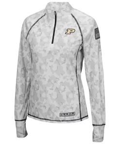 No matter where you watch the next Purdue Boilermakers game, make sure your look is as strong as ever in this OHT Military Appreciation Officer Arctic Camo 1/4-zip jacket. This piece of Colosseum gear features a distinct camo design and the Purdue Boilermakers logo is proudly displayed on the chest. Sport this over your go-to team tee for a complete look you will be proud to show off this season.